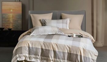Выполнен из серой трикотажной ткани. Стежка на синтепоне создает дополнительный комфорт и уют. Для бурлетов используется износостойкая рогожка в цвет чехла матраса.