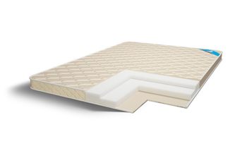 Наполнение у разных сторон матраса различное. С одной стороны находится комбинация койры кокоса и ортопедической пены – такое сочетание придает этой стороне умеренную жесткость. С