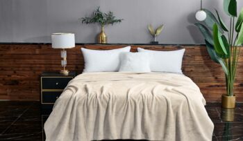 Чехол: 100% длинноволокнистый ультра-тонкий египетский хлопок, батист, 325 TC, эффект персиковой кожи, обработка аргановым маслом. Дизайн: стеганное, квадраты; элегантный бело-золотой кант.